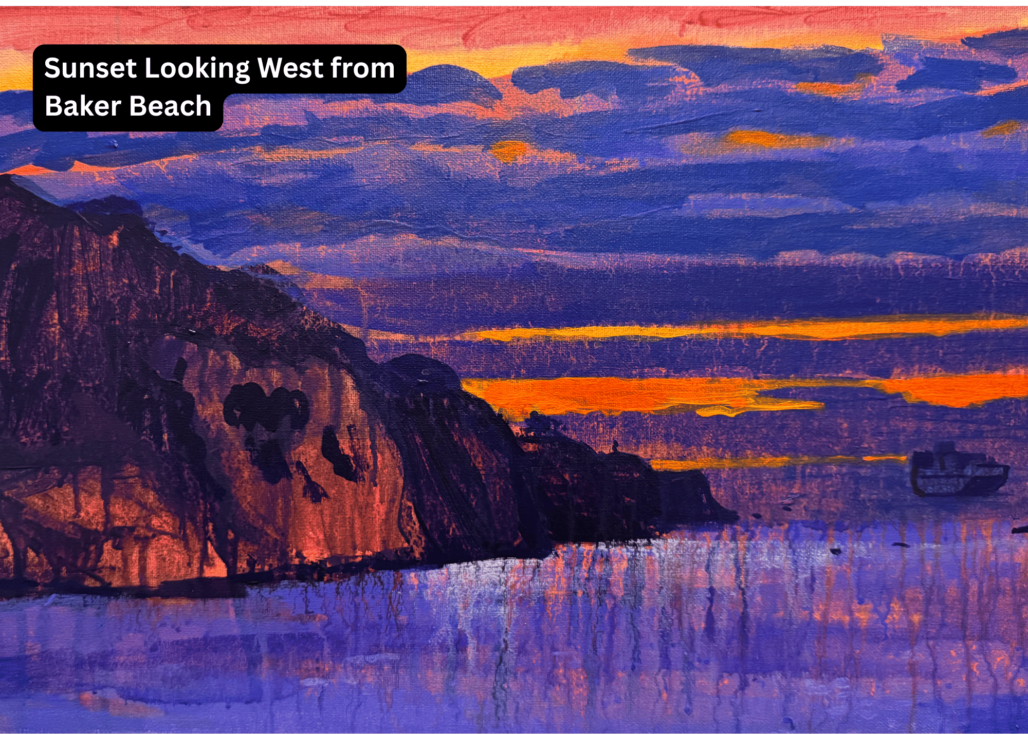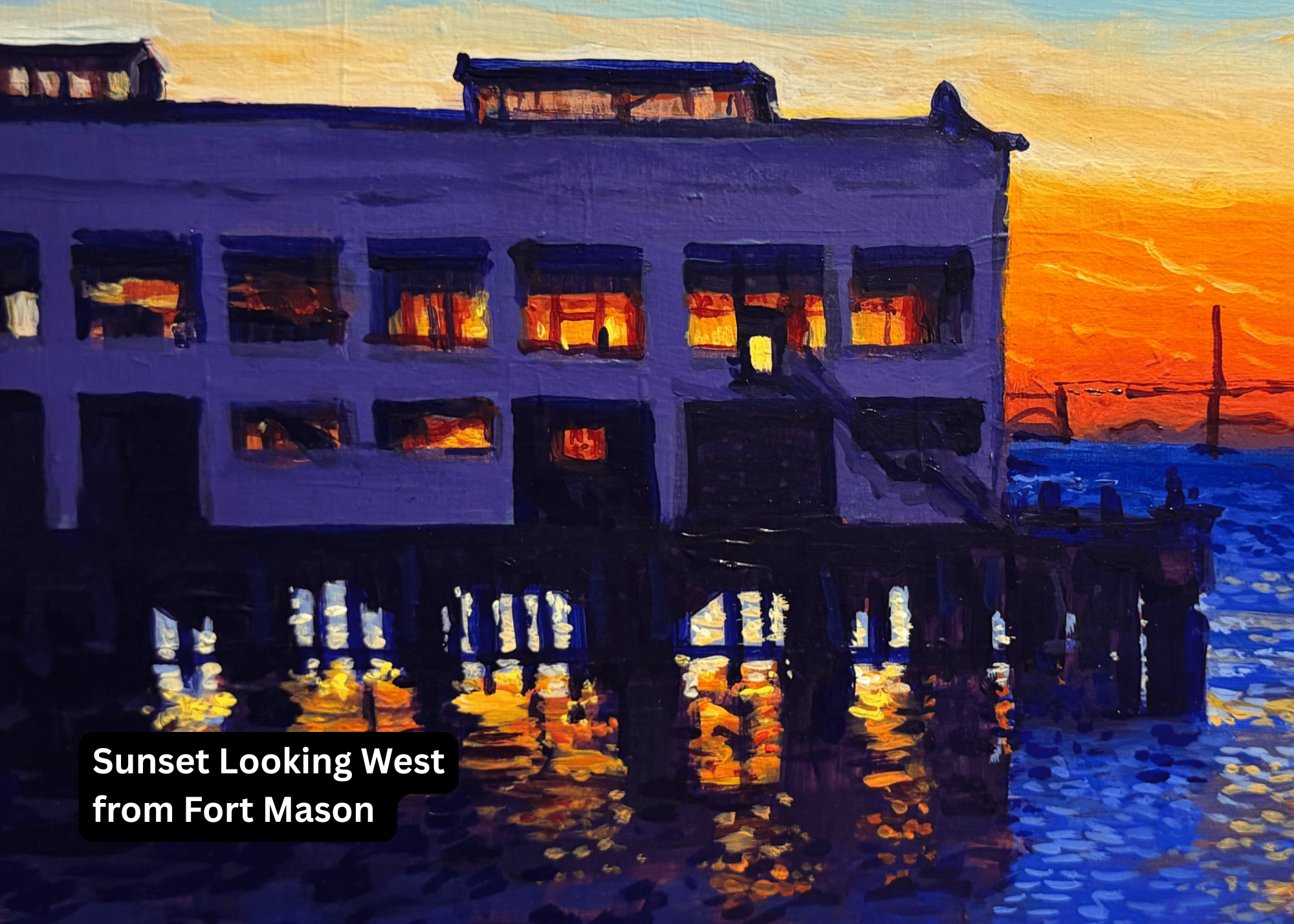 • Sunset Looking West from Fort Mason — Golden light fading over the Bay in warm, painterly tones.